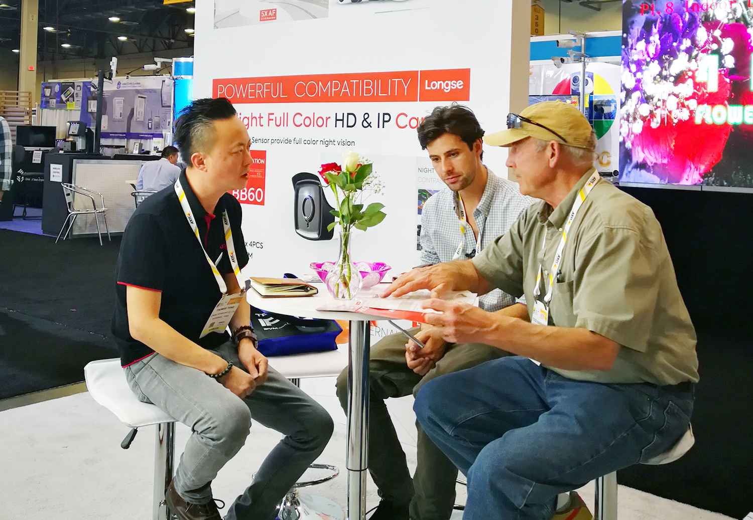 紅色靚麗的展臺,給攝像機(jī)增添了不少活力。在該展臺上,長視科技向國際買家展示了多款熱門的同軸高清系列產(chǎn)品,包括槍型機(jī)、半球機(jī)。透過顯示屏,客戶可近距離觀看并體驗(yàn)各類攝像機(jī)的成像效果,直觀感受高清、紅外夜視效果,感受攝像機(jī)的魅力所在,選定最佳的解決方案。
