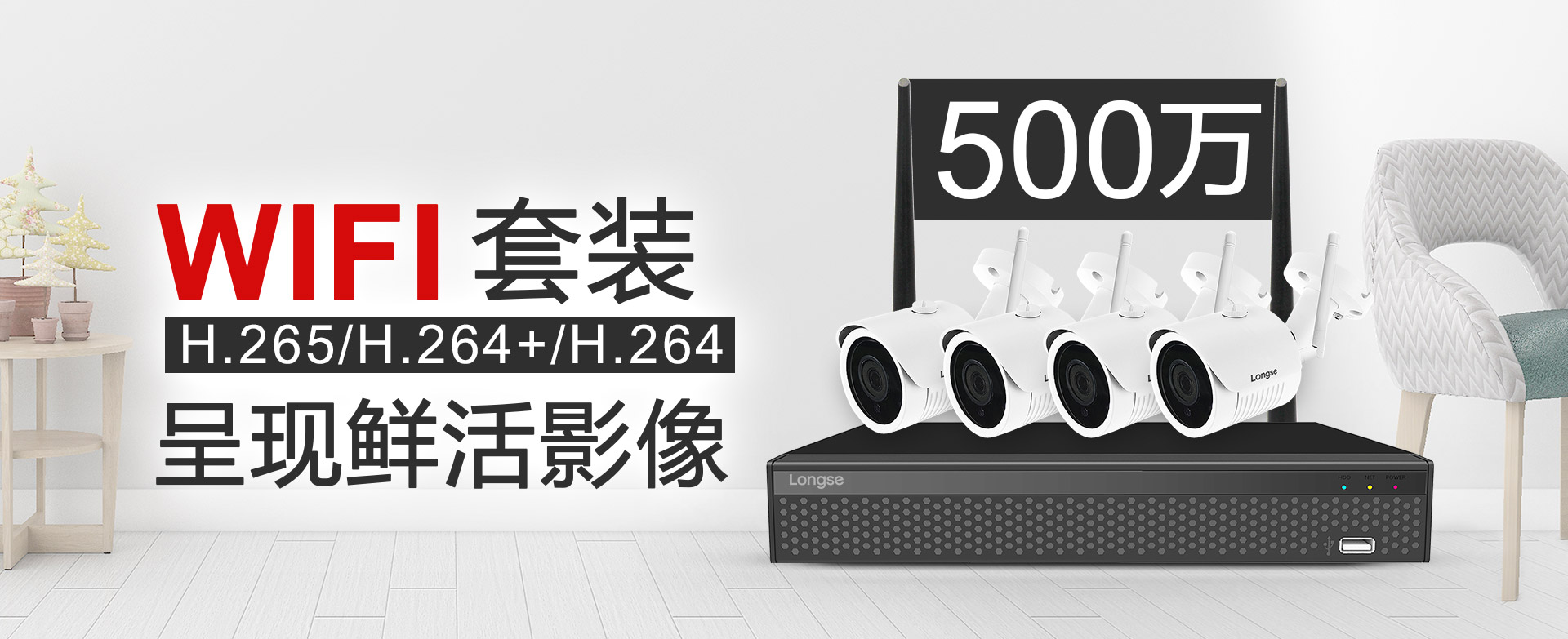 長視500萬WIFI監(jiān)控套裝,配備500萬高清鏡頭及HiSilicon解決方案,