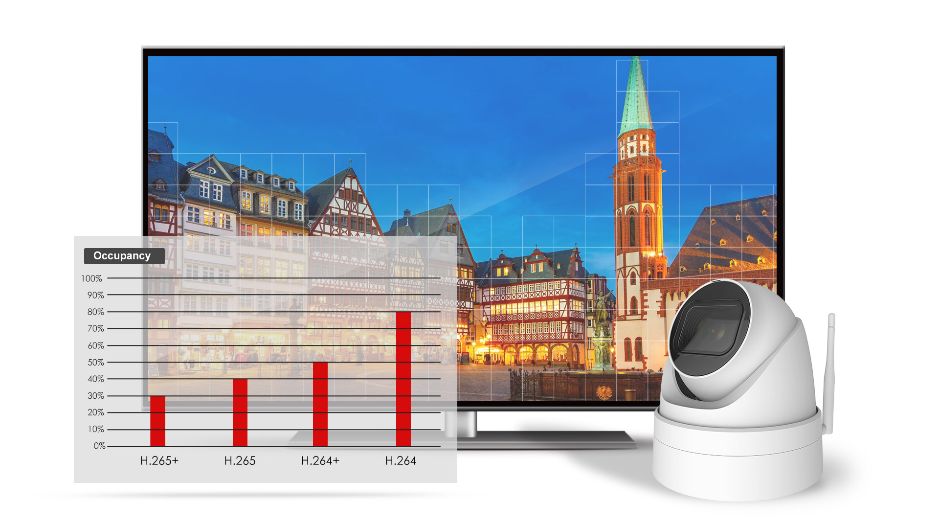 由長(zhǎng)視200萬(wàn)Wi-Fi網(wǎng)絡(luò)攝像機(jī)支持的H.265+、H.265、H.264+、H.264編碼標(biāo)準(zhǔn),