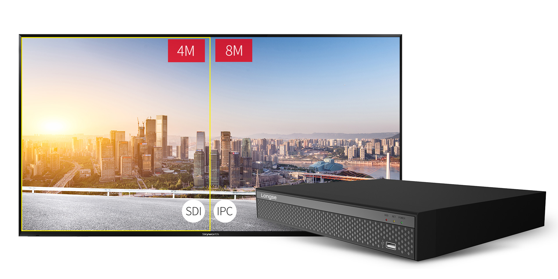 長視8路SDI數(shù)字視頻錄像機支持混合模式,SDI和IPC信號能同時在屏幕預覽或播放,